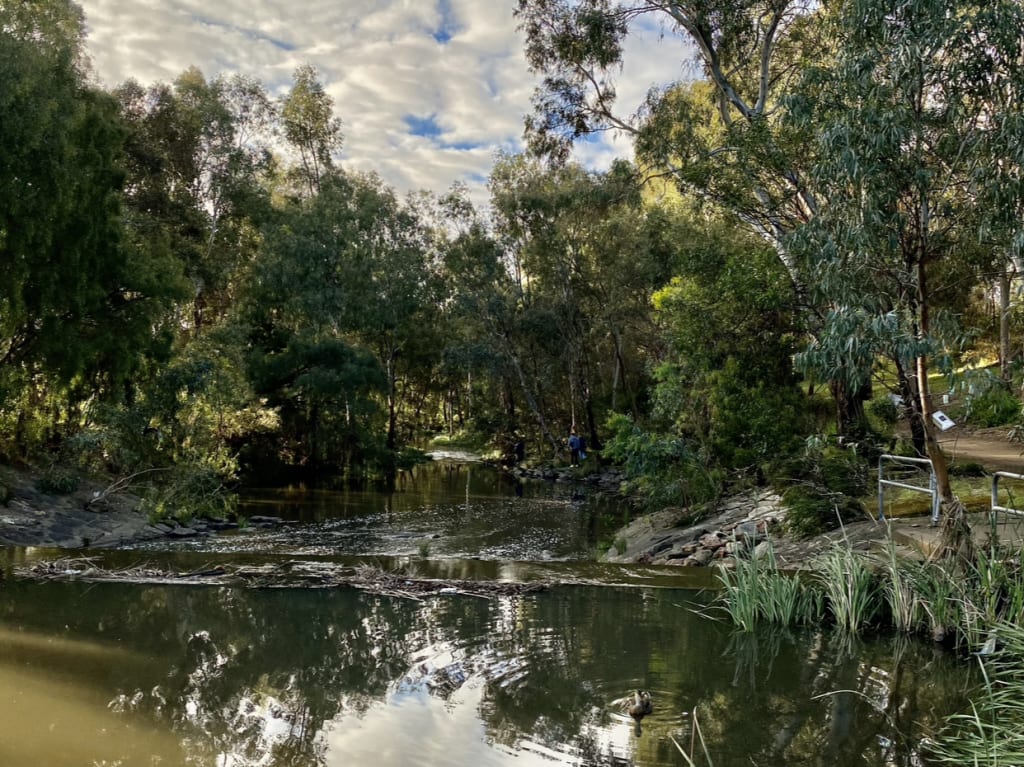 Through silvery gums and weeping willows I see kids running towards me as they chase their twig boats, racing along the current