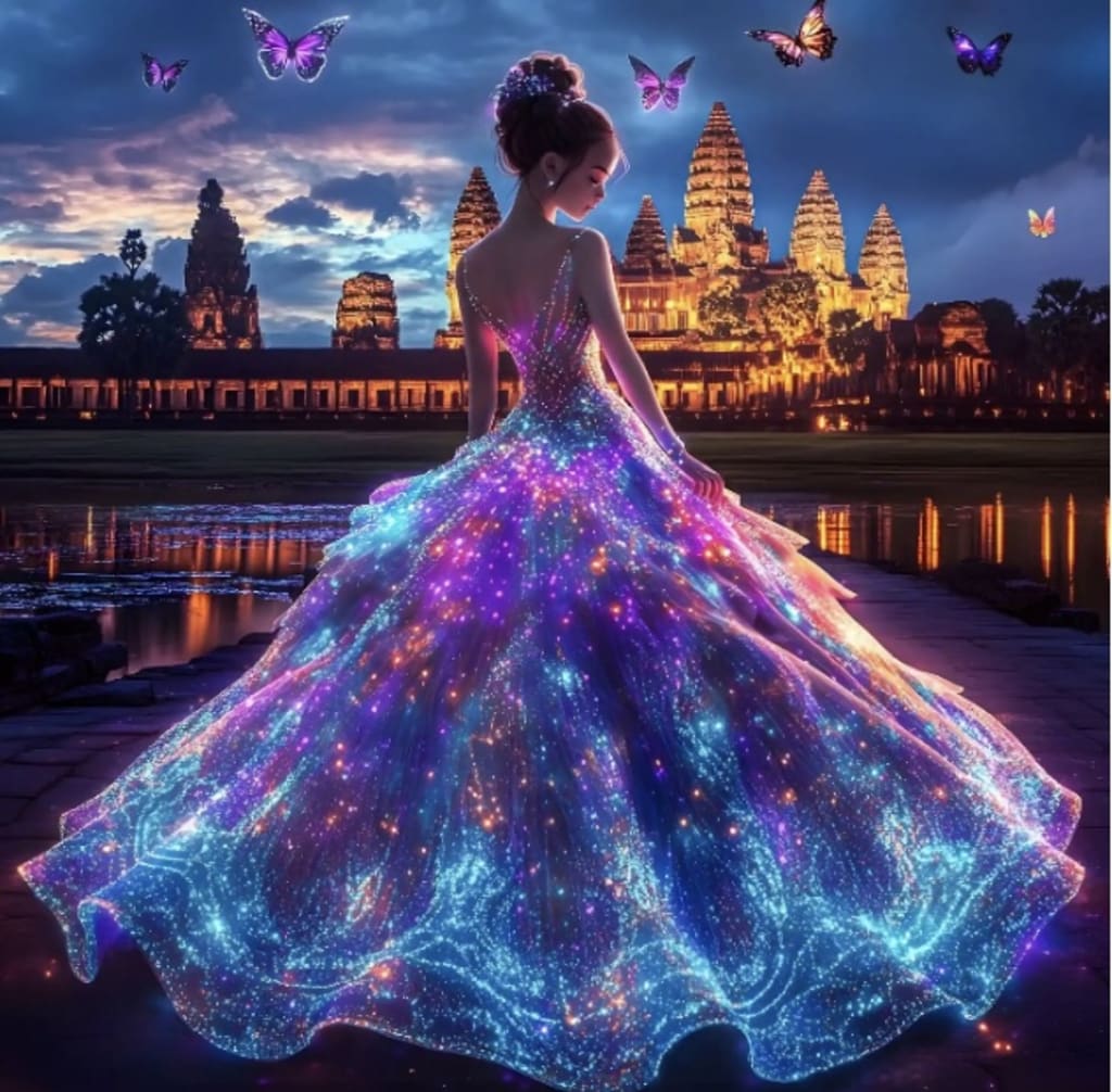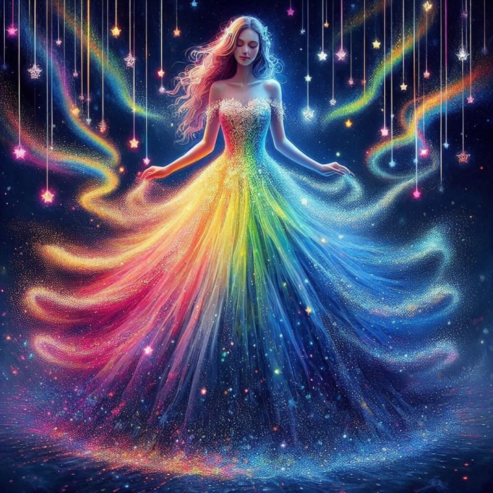 The lovely, elegant, brilliantly lit ball gown had appeared as if by magic, hanging invitingly in Saina's room on the eve of her thirteenth birthday. It glowed like a heavenly body. No one knew from whence it came, but its beauty matched that of the young princess perfectly. It shone.