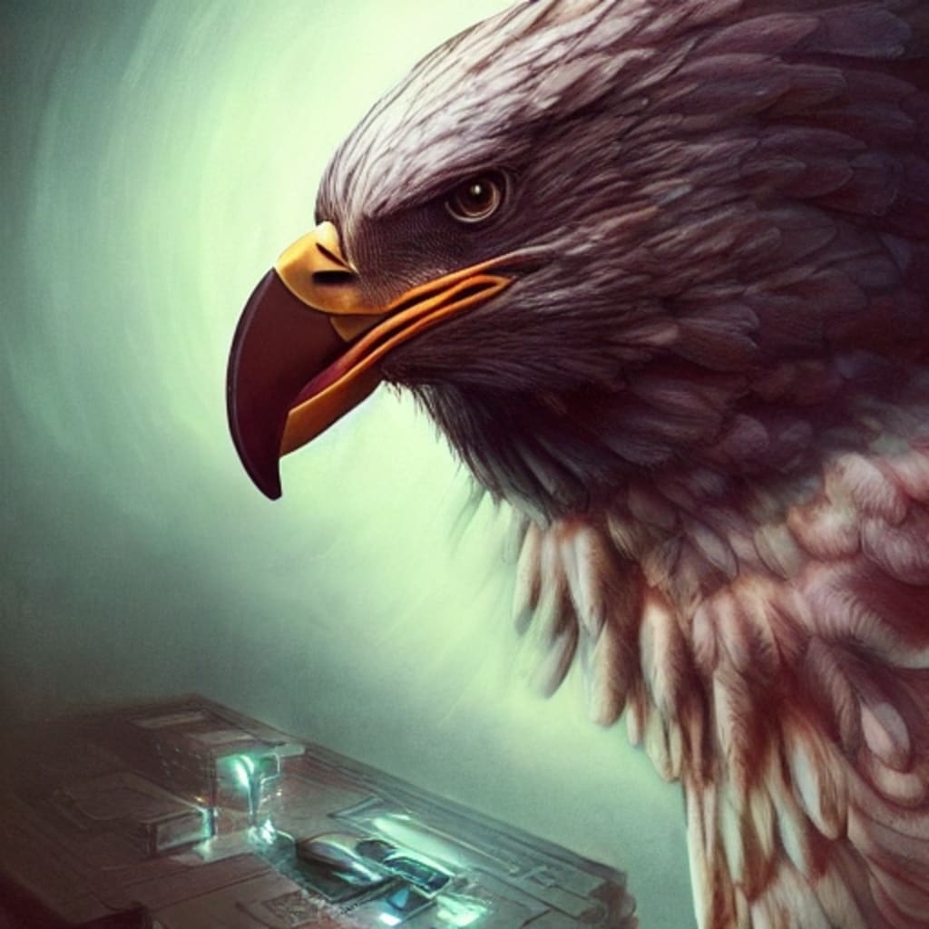 in a subbasement room (which must be a zoo) and one of them is the most massive eagle I have ever seen