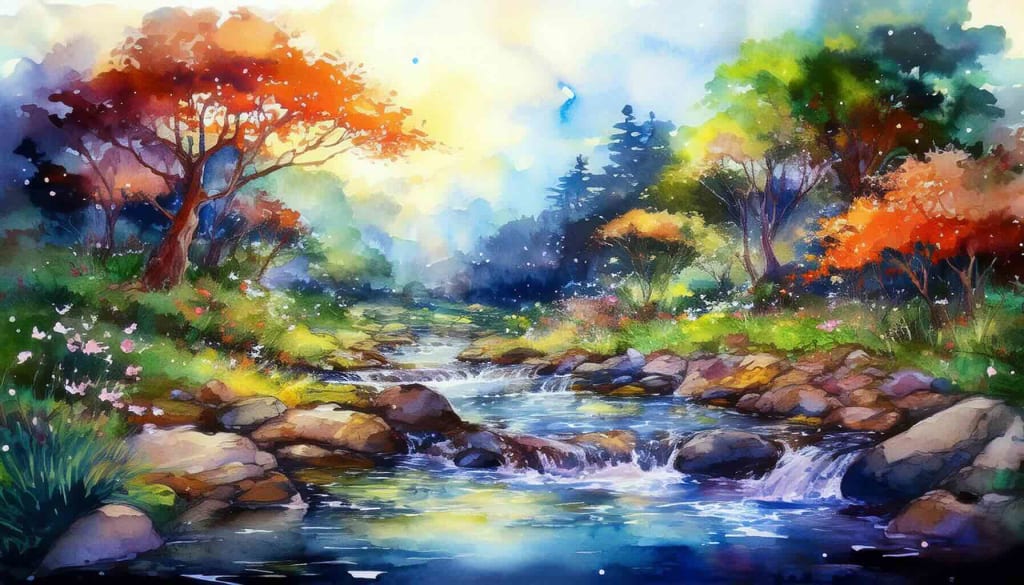 the creek rushes faster, the colors deepen.