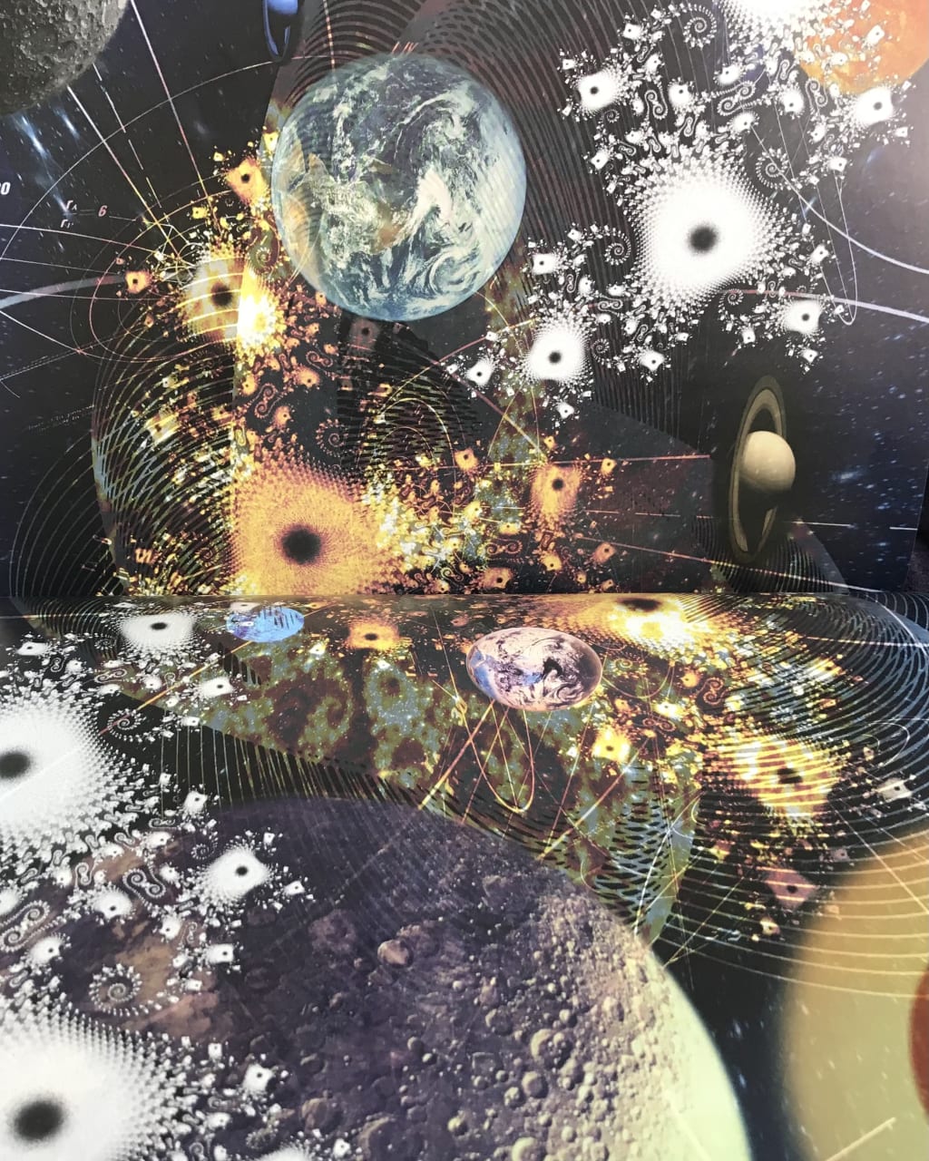 Twin orbs twirl in the dyed black sky