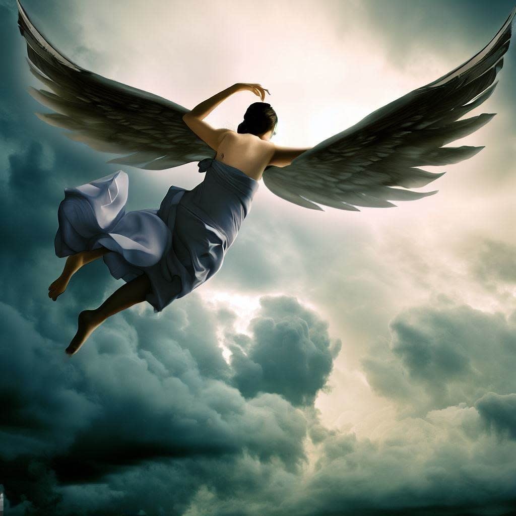 A short poem with rhythm and suspense, where a woman dreams of flying with wings, but faces a stormy obstacle
