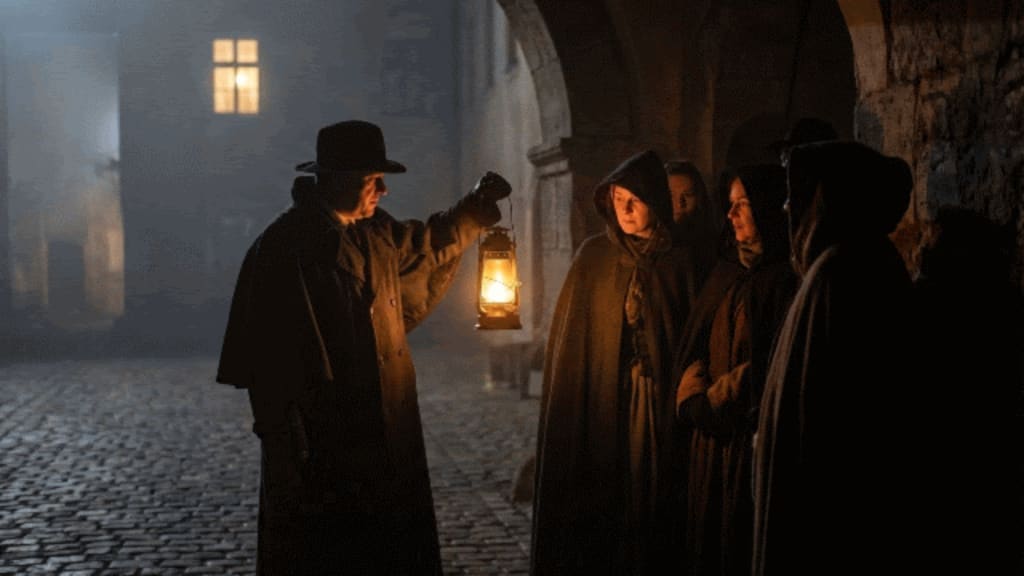 A mysterious man walks at night with a lantern that brings warmth and hope to dark places