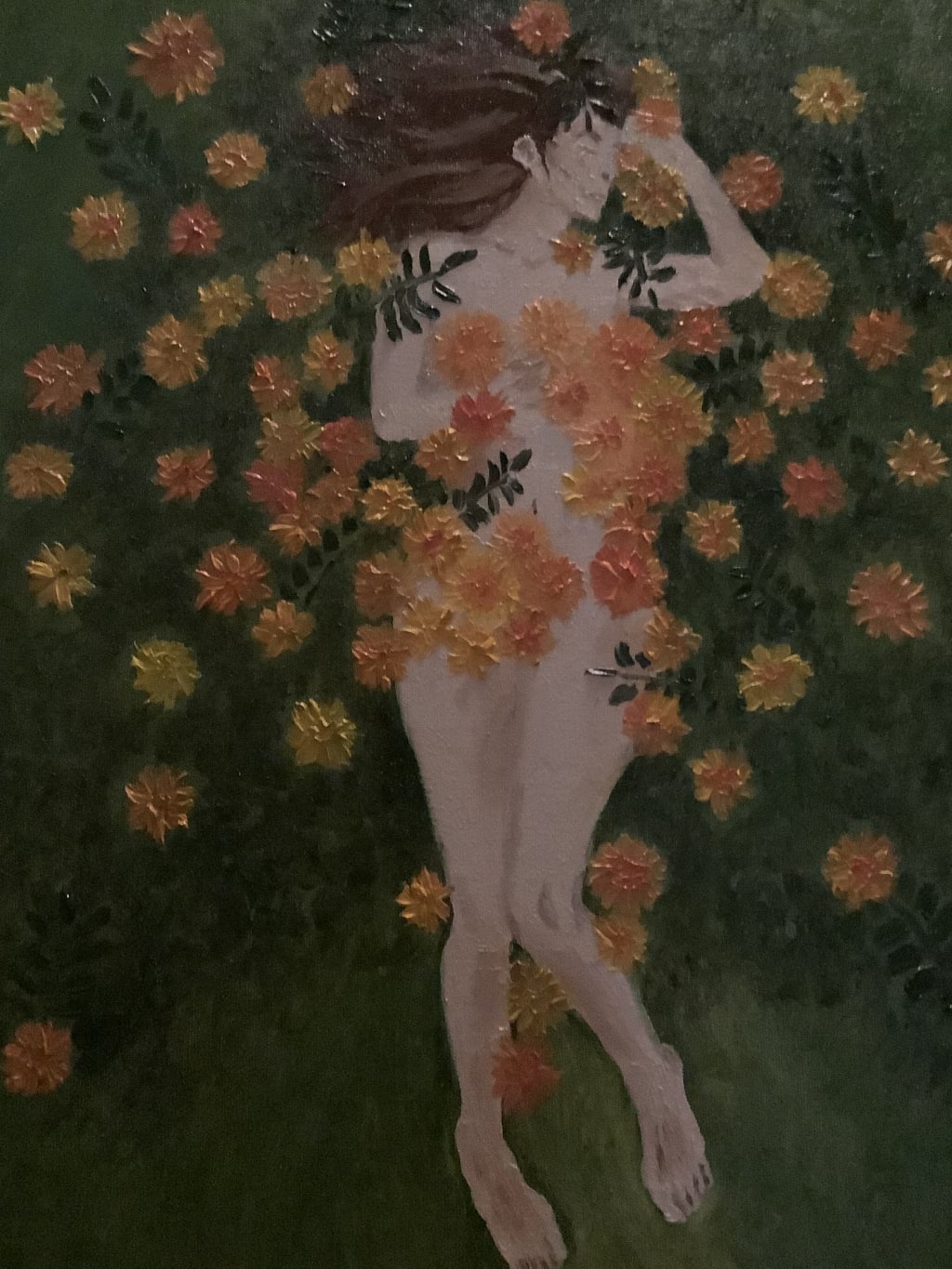 Small scars slowly covered, by each marigold.