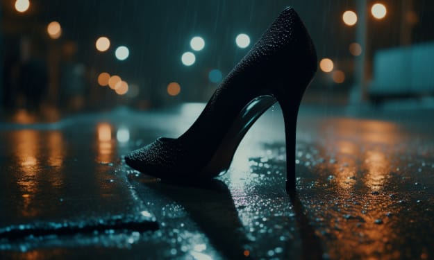 She walks in the ink of night, a silhouette woven into the dark tapestry,