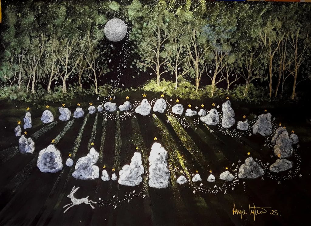 Moonlit hare journeys between ancient stones under star-lit whispersβyour villanelle dances with magic, silence, and cosmic wonder. ππ