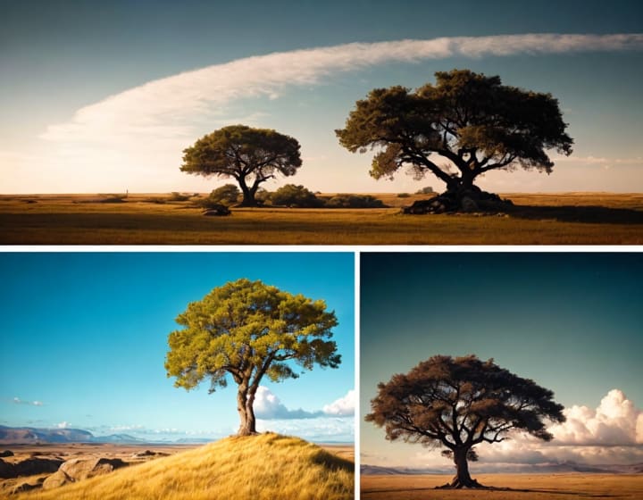 Rooted profound, weathering life's breeze.