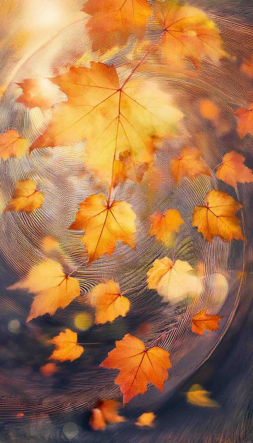 Amber leaves descend,