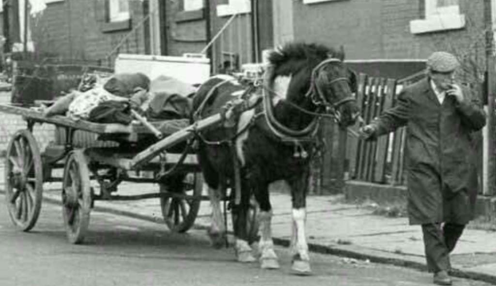 The rag and bone man, coat earth-brown.