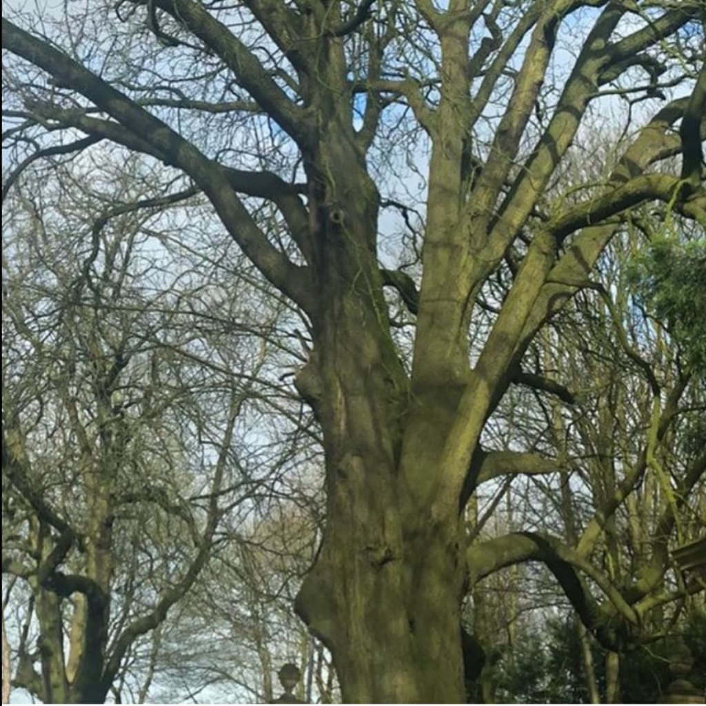 The spirit of the old tree lingers, aware.