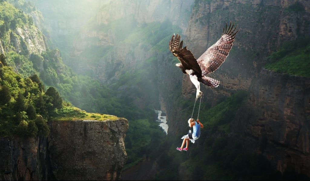 Flying over the natural landscape, into the skies,