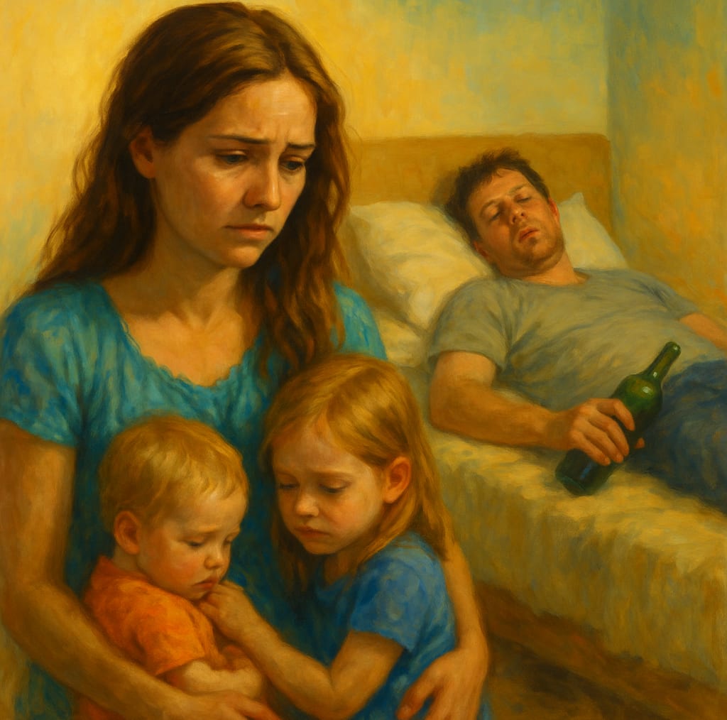 What a very, very sad poem that tells a story of how a battered women feels in many ways. If this is real tell here to take the kids and run. Turn him in. Good job.