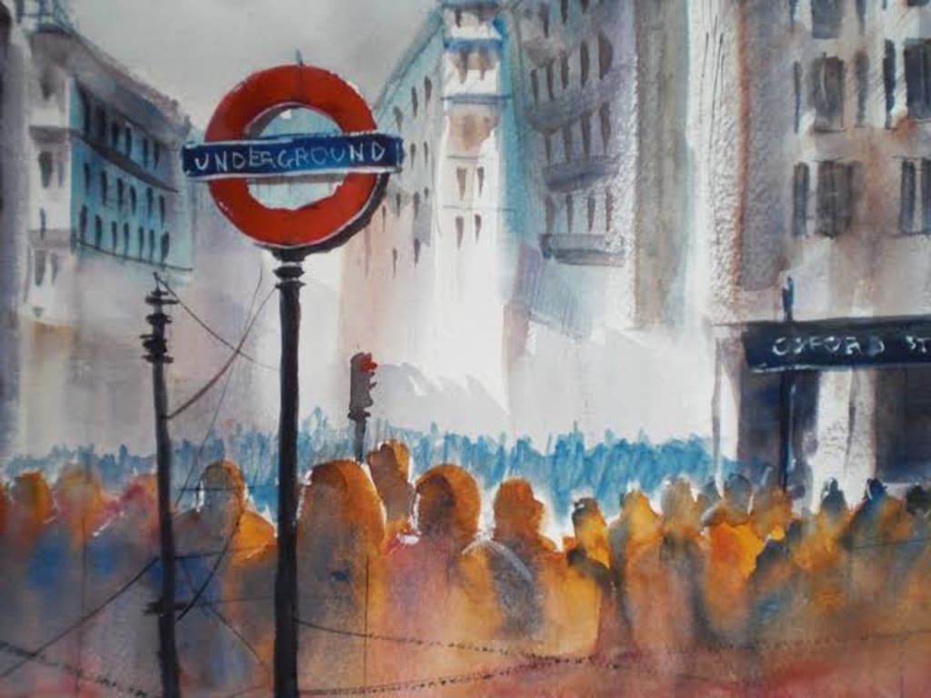 She strokes his wrist with her finger tips, each digit adorned with a ring