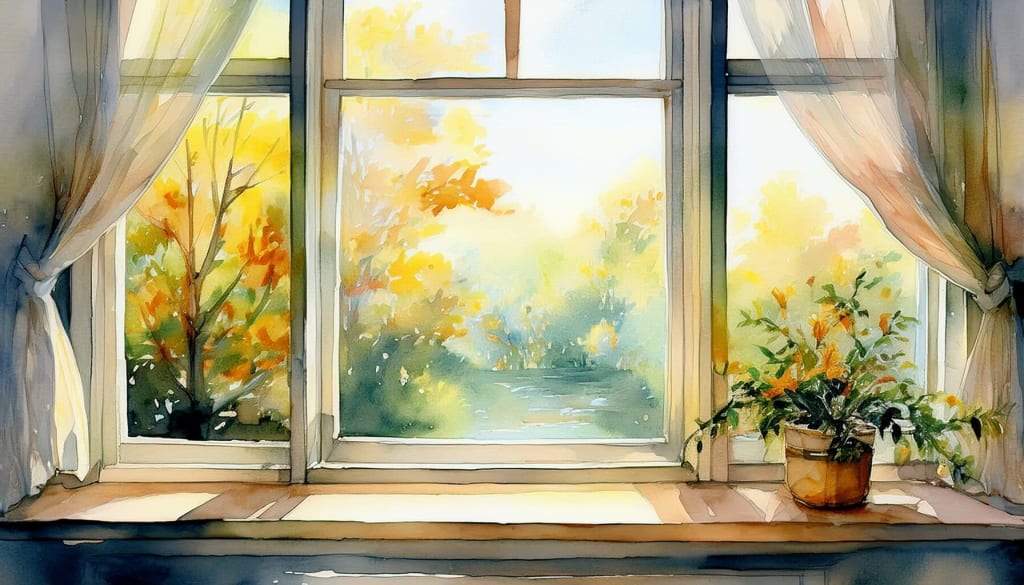 soft gold sliding across a windowpane,