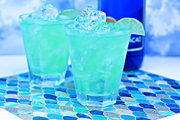 - drizzle in a few drops of blue curacao