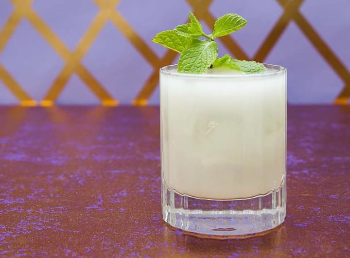 - Combine all of the ingredients in a glass. Garnish with a few pieces of mint.