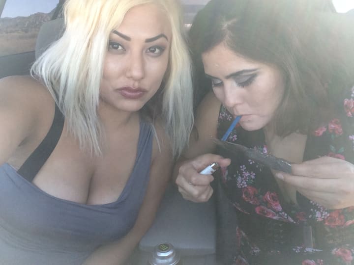 We have been binge-ing. She still prefers to smoke. Especially if she's waiting for me to prepare the needles. I entertain it because I know it makes her feel less of an addict. Inside; only thinking of all the waste. But the idea of using is still so taboo and foreign. Even while were dipping in... Now, I'm on a mission. Leaving the home with large steps. I float back to the black Toyota 4 runner; with a perfected act. A feigned kind of urgency. I'm close enough to see it written on her face. Suspicion marred by relief. Her brows furrowed and distressed. Jumping inside the SUV quickly; with an infectious smile. I check the clock; a fast 13 minutes. Probably not for her but I start unfolding the prize. Hidden inside a ripped off grocery bag. Its the size of a nickel but thicker; powdery, yet solid. We're both excited. Pointing out the red undertone and strong aroma. It's a promising batch. We know we should get more but were about to miss our movie. Quickly, I start breaking apart our fixes.