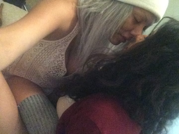 Whenever she's excited, a green starts bordering the edges. Kissing, quality time and heroin are the only things that bring out the lighter honey. It's there now. It's selfish but I love seeing the softening that heroin does to all her features. It's why I've never pressure her to stop... The stress completely melted away. I look at her now. A grimace marred by anticipation. The nerves giving her features a glow from beneath. I can almost feel her skin prickle with anxiousness. I flick the 'point' towards her, "ready?" Showing off my excitement with dimpled cheeks. She responds in a tight, urgent smile. I know she's more in mental distress. It hasn't been more than a day. So I tease with my deliberate movements. "Give me your arm." I'm aggressive and playful. I grab the cut up exercise band from my 'kit.' Using it to cut off and centralize her blood flow. Patiently waiting for the veins to pop. Her's are pretty quick. I gently feel around the area. Deciding how quick the vein's move; is it everywhere or does it stay still?