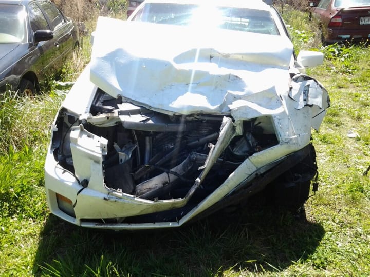 Tony, my boyfriend, asked me where I was and what had happened. I remember giving some sort of disjointed answer, because of the fact that I surpassed terror and panic and had fully graduated into hysteria with full honors. I don’t know how he did it, but Tony managed to calm me down enough to where I could speak properly again. That was when he found out that I hadn’t called the police yet. He told me not to move (too late) because I didn’t know if anything was broken. I was still sitting behind the wheel with my seat belt on, so I promised to stay there while I called 911.