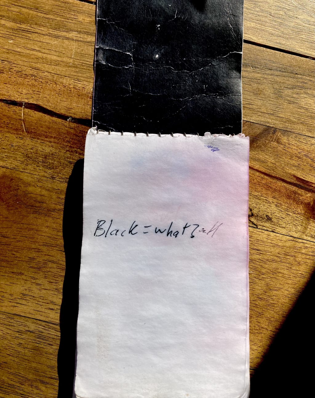 The first page has one phrase: Black = what?