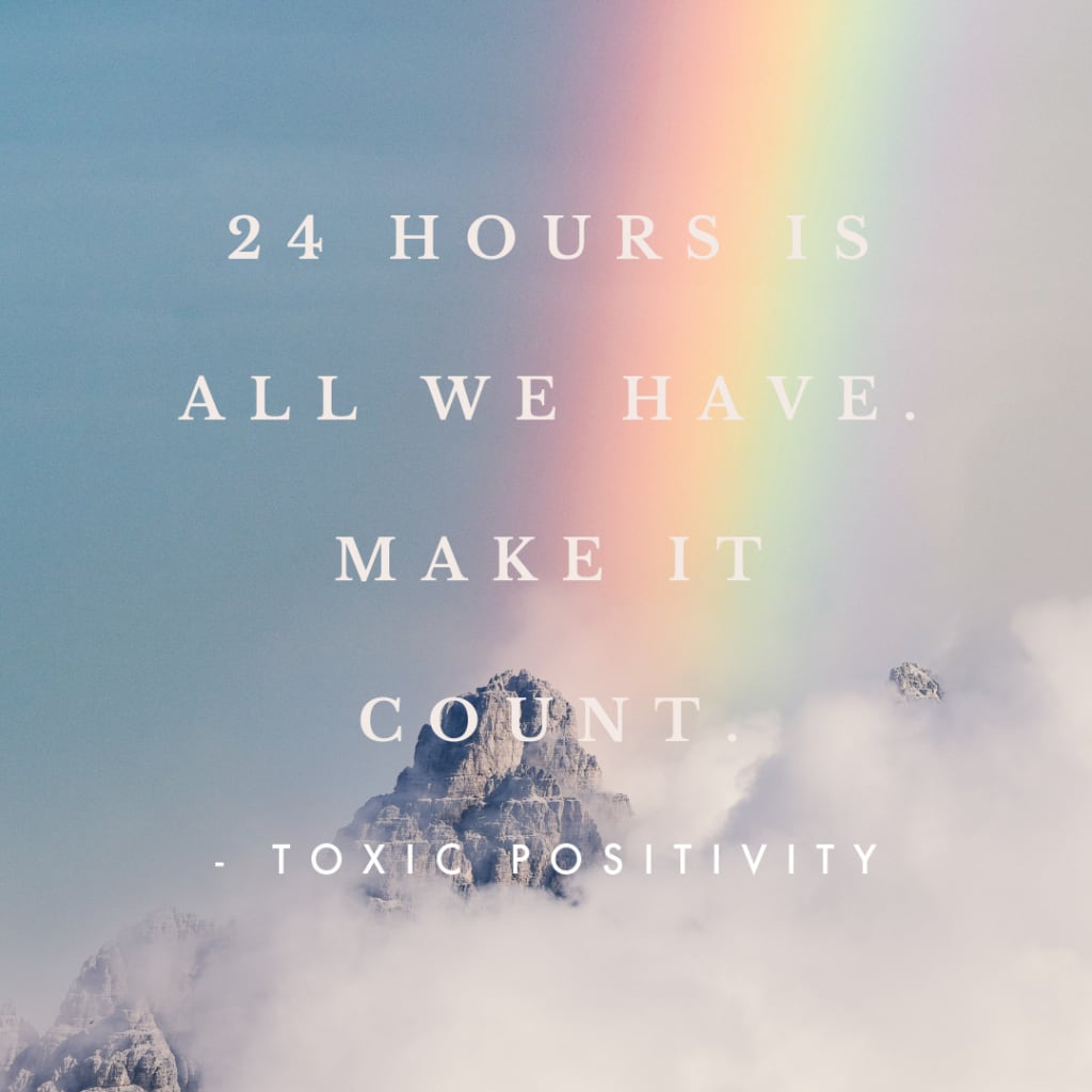 I’m reading an excellent book at the moment by radically honest psychotherapist Whitney Goodman (@sitwithwhit) aptly named “Toxic Positivity”. It’s hard not to be affected when we’re surrounded by memes and quotes reminding us: we could have X if we simply subscribe to Y, yet we’re left feeling like Z. When aspirational content leaves you feeling despondent and failing, where do you go from there? It’s the kind of mental break we need that can’t be solved by a cup of tea and a hot bath. Real healing involves raw reflection and critical evaluation of our emotions.