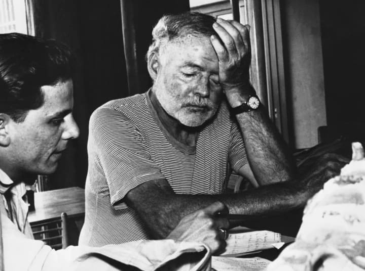 Hemingway was traveling in Africa when two plane crashes almost claimed his life. He had injuries including a fractured skull, ruptured liver and spleen, two damaged discs, and other wounds.