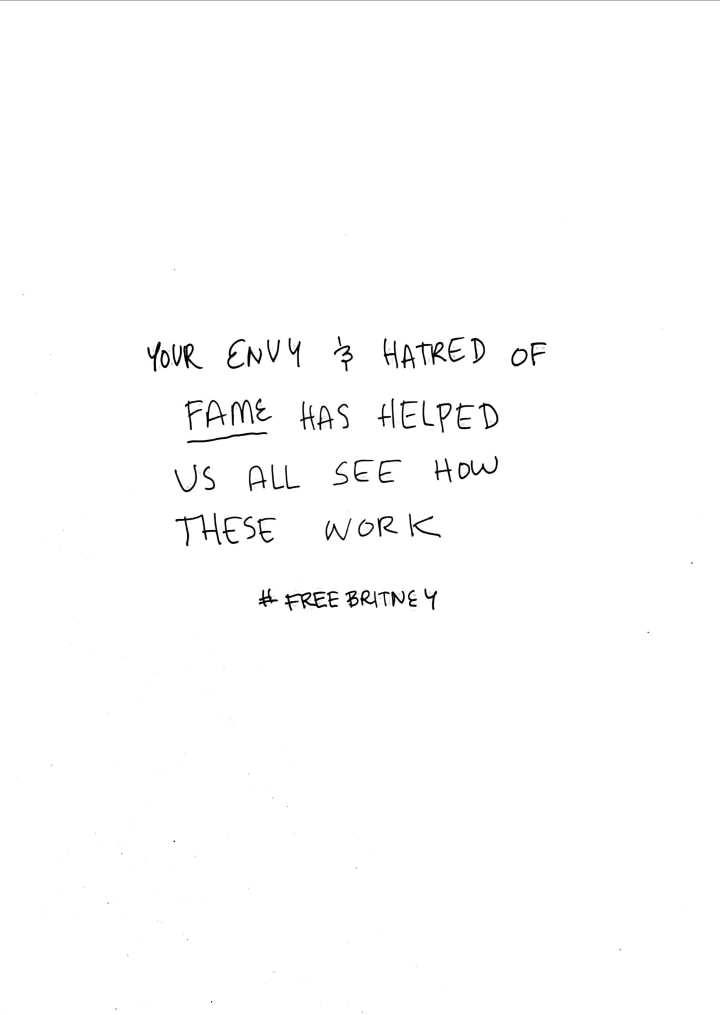 Regardless of this I want to drive home an idea I had today, which I thought was *Brilliant*: What if, instead of putting any sort of pressure on Britney, or ourselves, to out the whole nasty side of the Illegal Surveillance, and start talking about Spy Moms (the next article I’m writing), we instead see about getting all of those horrid cutthroat lawyers and fathers to actually put all that weight and steam behind something we are all coming to love and care about more and more: The Planet? Imagine Britney’s dad and law team sequestering the CEO of McDonalds or Disney to see how Outrageous THEIR behavior has been? If anyone needs containments akin to the powers of Conservatorship, it’s Bezos and Musk, no? Those two together are running a goddamn muck and I’m not convinced either of them are in good mental health to look after their own interests, let alone the requirements of their local ecosystems and the health of Earth. Can we start this motion please?