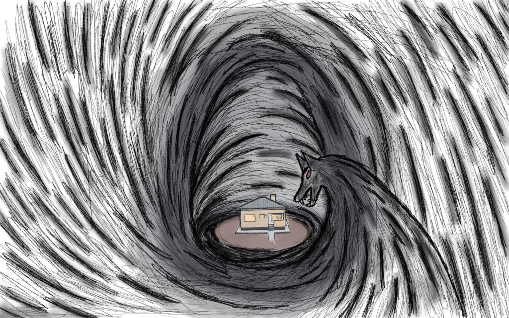 There it was again, sleep. How could I sleep with this thing stalking us like prey. I move from window to window to check that they were all closed. Checking each and every crevice this thing could enter from the outside. My brothers are following me. They're staying close. I feel it's coming. I hear this thing's footsteps outside. There are scratching sounds at the front door, it's louder and louder. I run towards the front door throwing myself against it to keep it closed. Bang after bang my heart races faster and faster. It's going to get in, it's going to get in, I think. My heart racing so fast to the point where I had to wake up. I was gasping for air, the bed soaking wet, adrenaline rushing through my bloodstream.