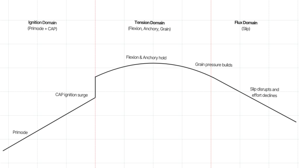 If ignition (Primode), emotional energy (CAP), and task-fit (Flexion) are high — and focus holds (Anchory) while resistance (Grain) stays low — you’re flying.