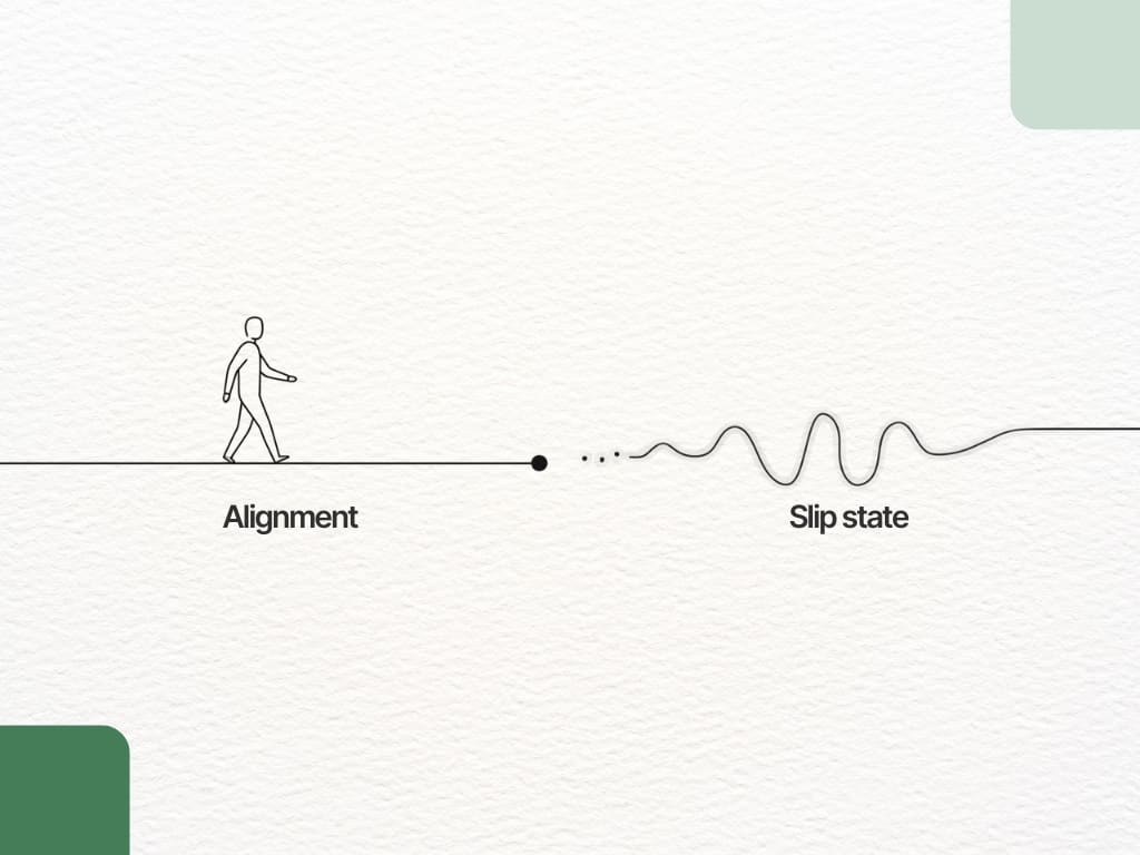 Misalignments in these variables amplify the impact of Slip, creating conditions where effort becomes unstable despite clear intent and capability.