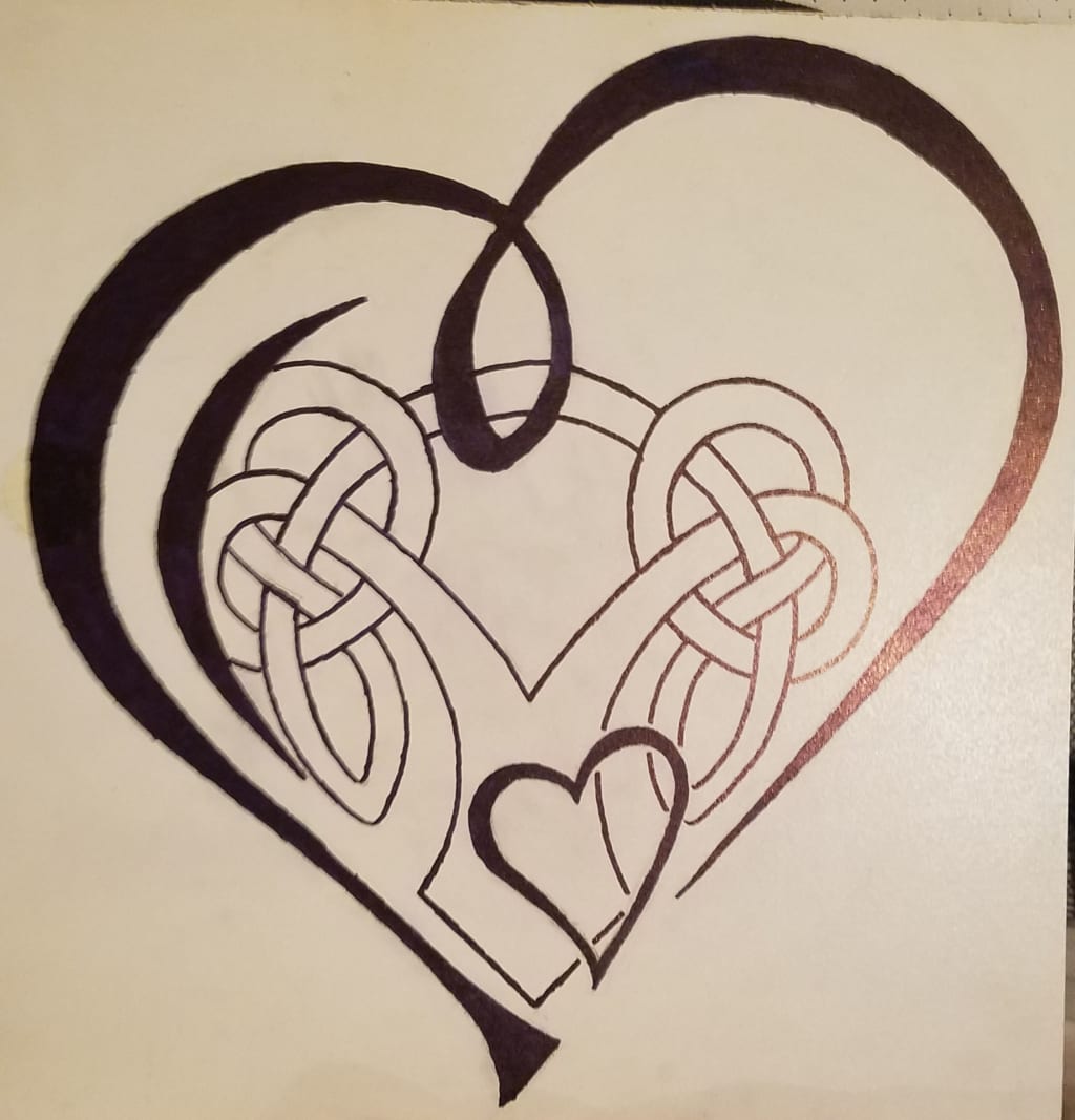 I began to draw hoping each variation of wings and heart told the story of how I was healing if you want to call it that. I still felt no passion, no love, no more alive. I made a homemade prison by having my dog and a mattress on the floor. No food, no friends, and all I prayed for was love and kindness. It wasn't always there when I wanted it or needed it. It was extremely hard to give your heart to a strangers and feel rejected by everything.