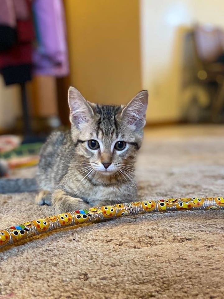 When we got home with our newest family member, he became a welcome distraction for the rest of the evening. We spent the rest of the night watching him explore, helping him integrate with our other two cats, and watching my 5-year old play gleefully with her new best friend. It's been awhile since we have all laughed like we did - stress takes its toll - it was nice.