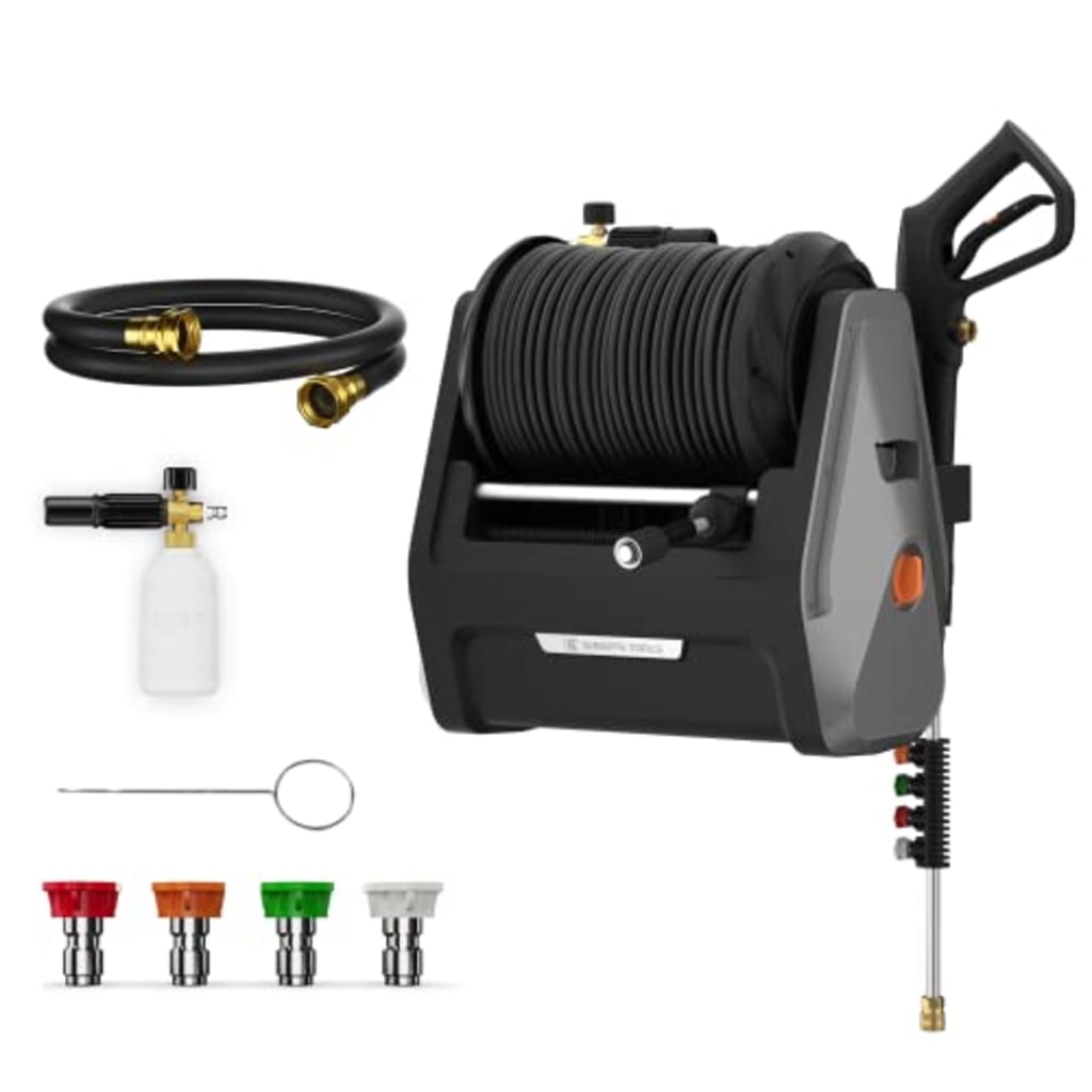- AUTOMATIC PRESSURE DRUM: The Grandfalls pressure washer comes with a 100-foot retractable pressure hose, which is enough to make cleaning any area Retractable system for easy storage and to protect the pressure hose from kinks, tears, and tears, as well as for easier winding and unwinding. Save time and effort!