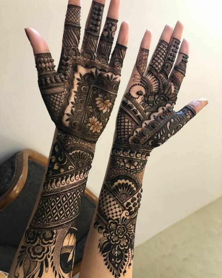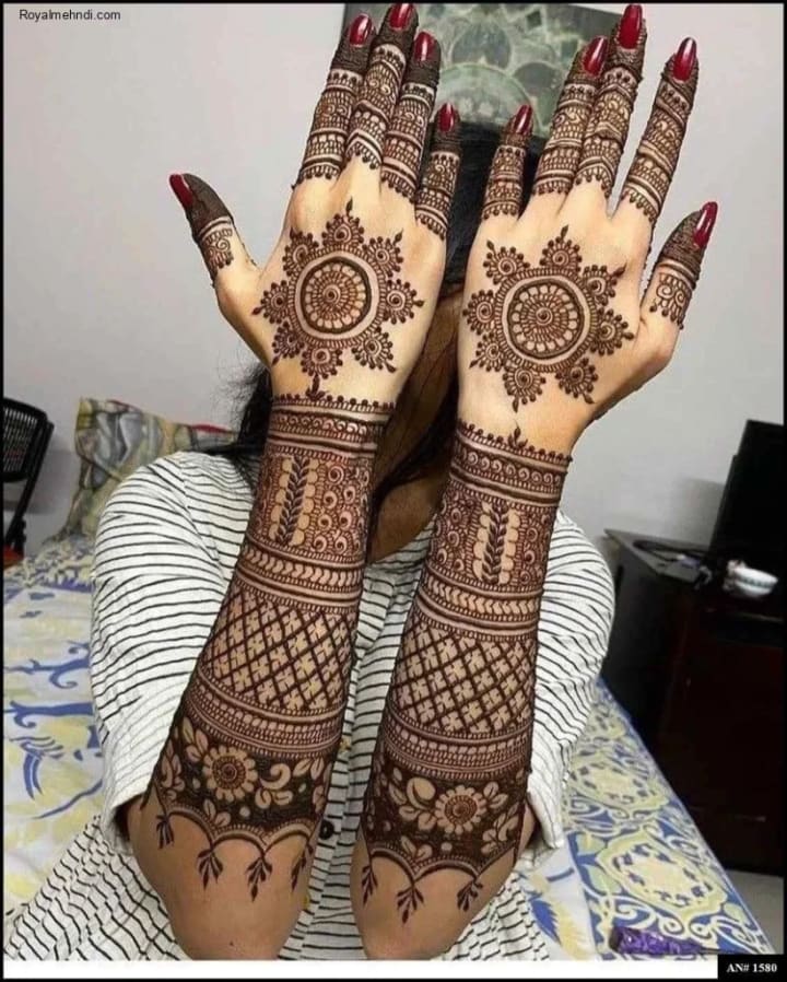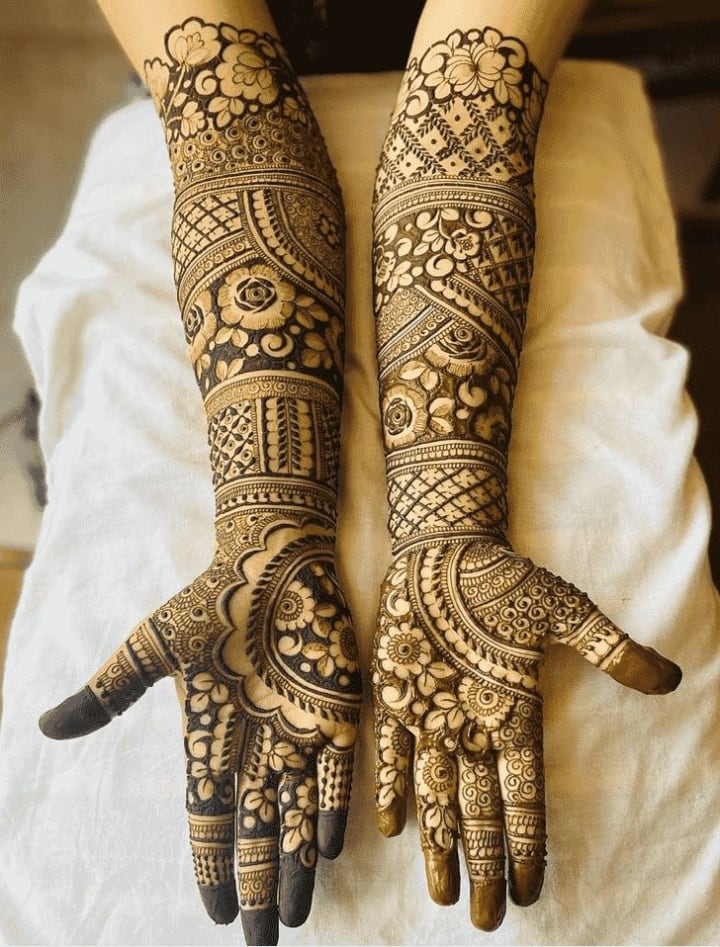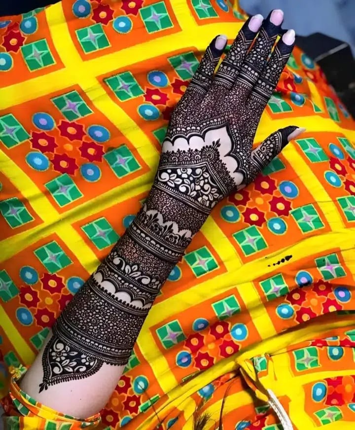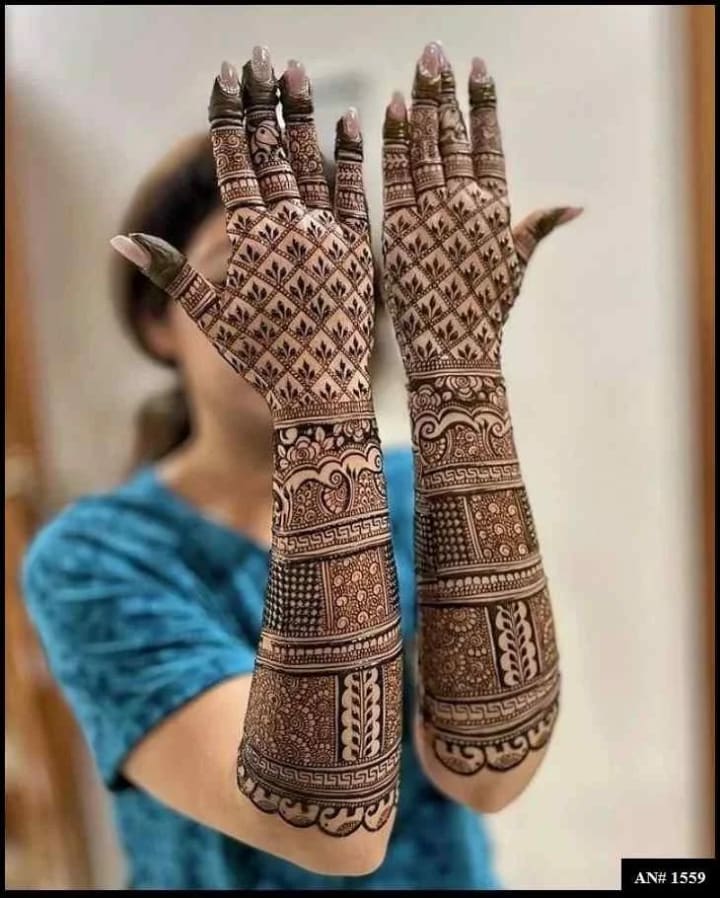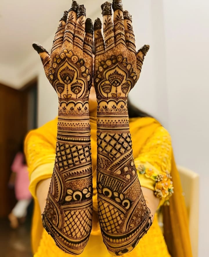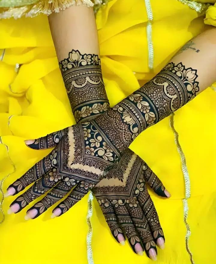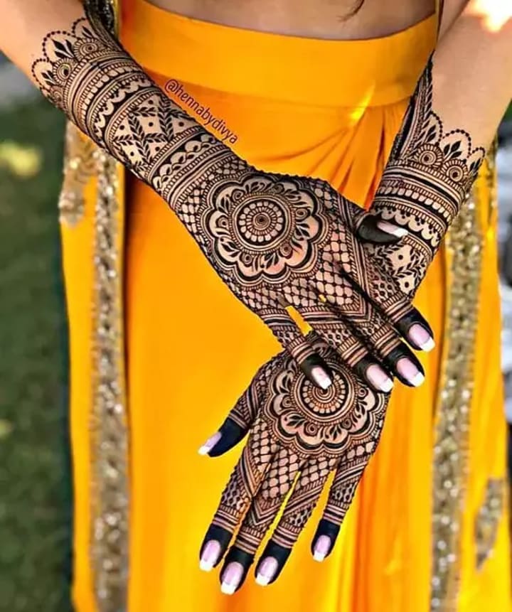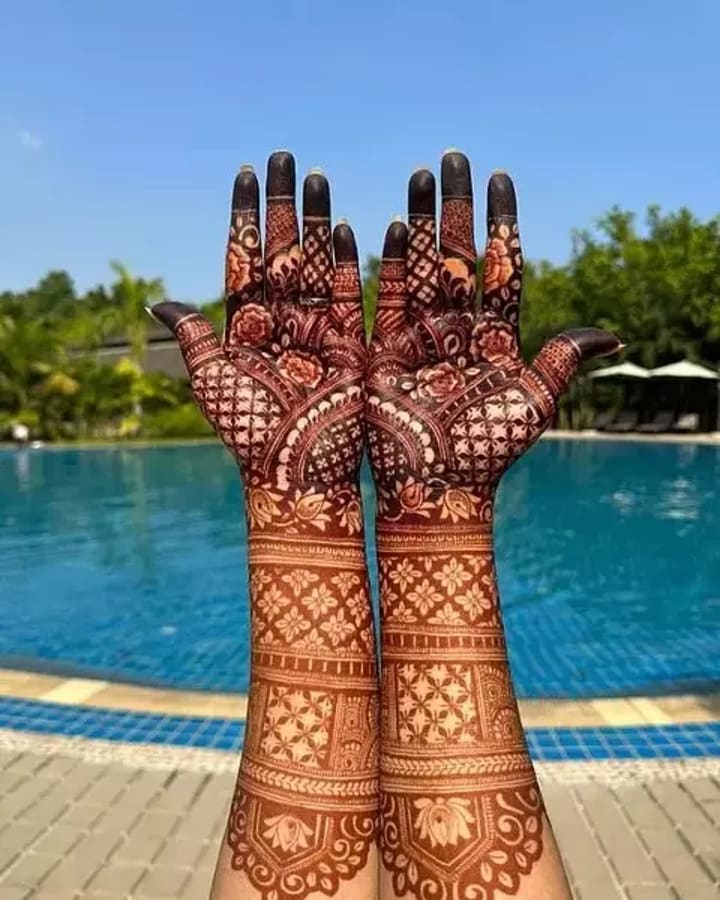 For many brides, traditional mehndi designs remain timeless. These intricate patterns often cover the entire hand, from the fingertips to the wrists, and extend all the way to the elbows. They typically include elements like paisleys, flowers, and delicate mandalas.