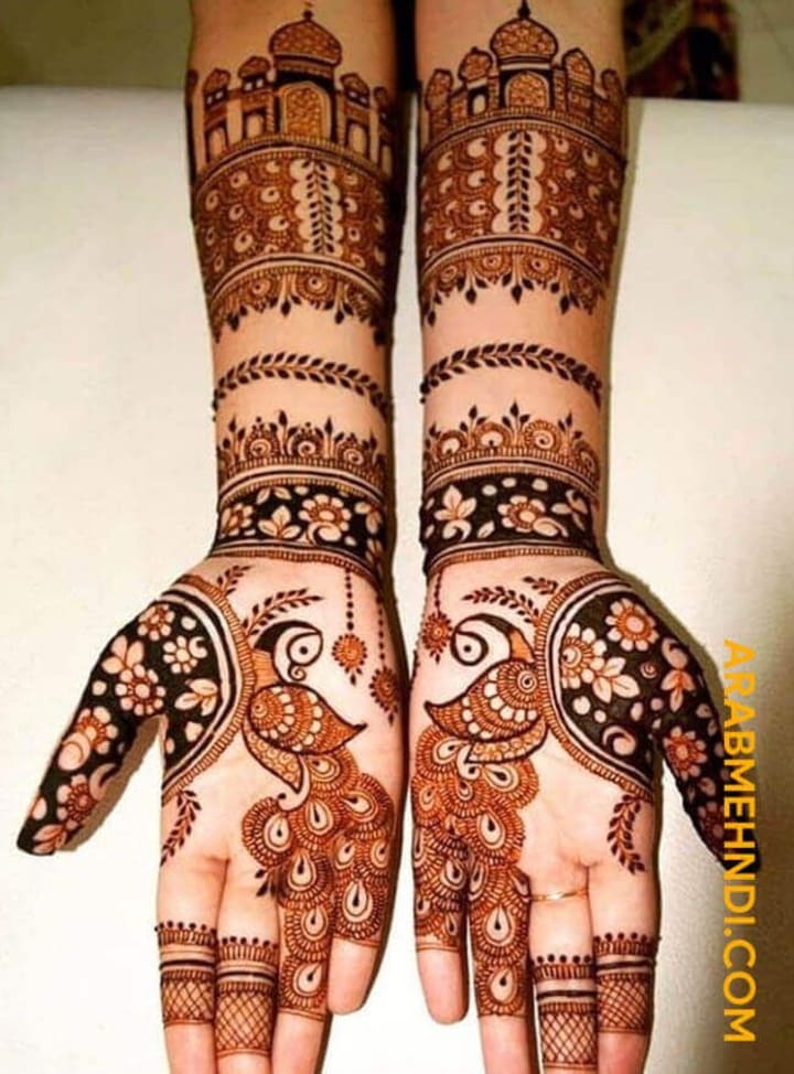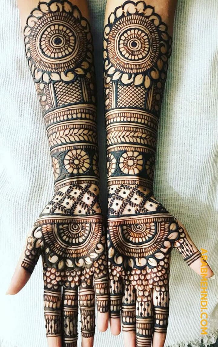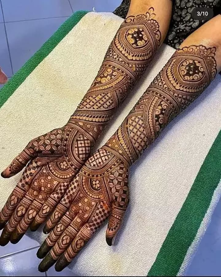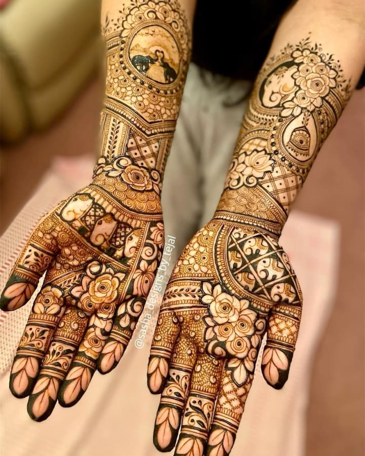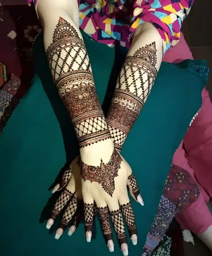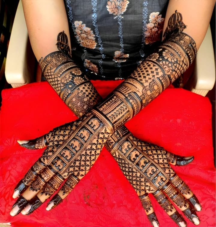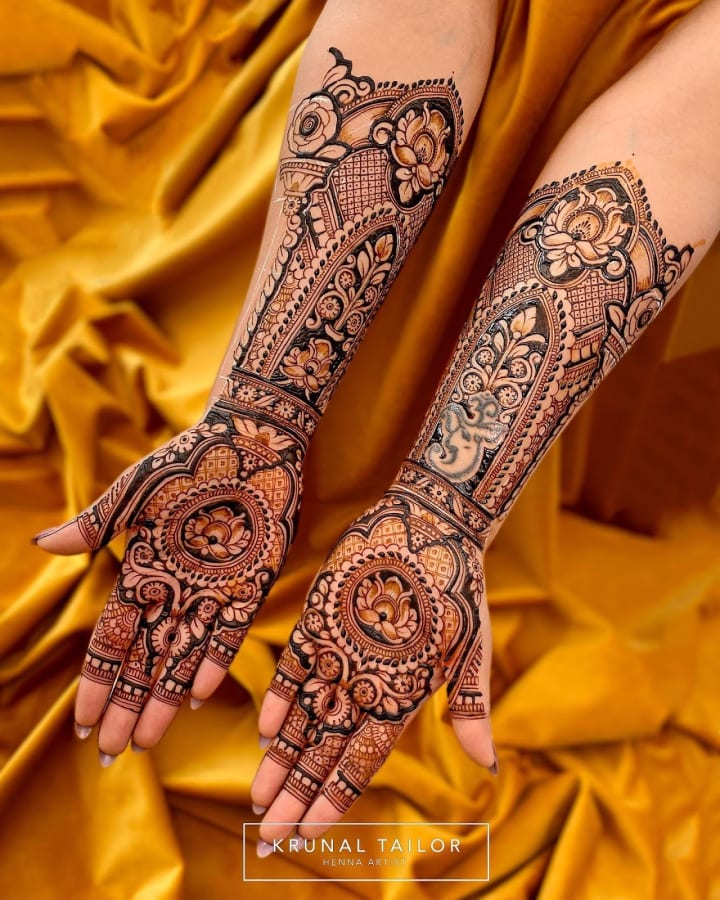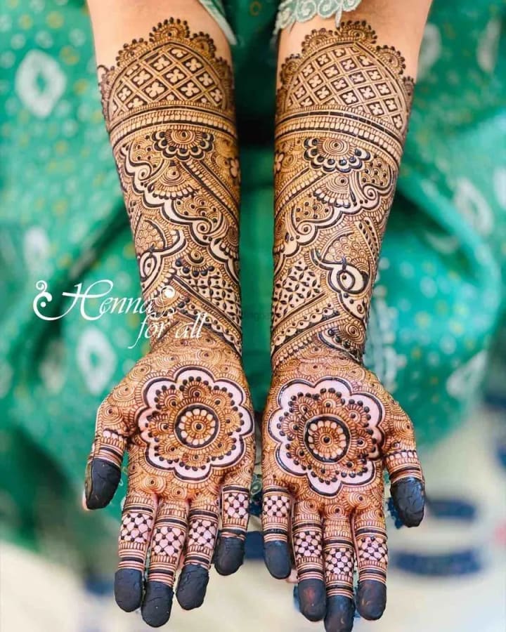 For many brides, traditional mehndi designs remain timeless. These intricate patterns often cover the entire hand, from the fingertips to the wrists, and extend all the way to the elbows. They typically include elements like paisleys, flowers, and delicate mandalas.