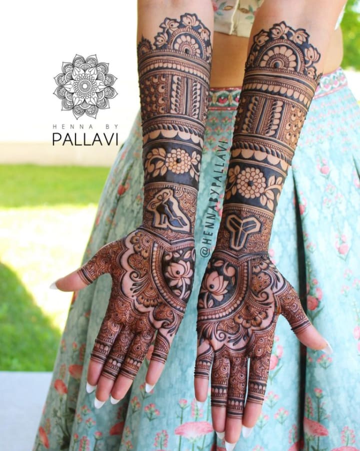These patterns are deeply rooted in Indian and Middle Eastern cultures and symbolize the bride's joy, love, and the journey she is about to embark on. Many of these designs also incorporate the groom's initials, adding a fun and romantic touch to the bride's look.