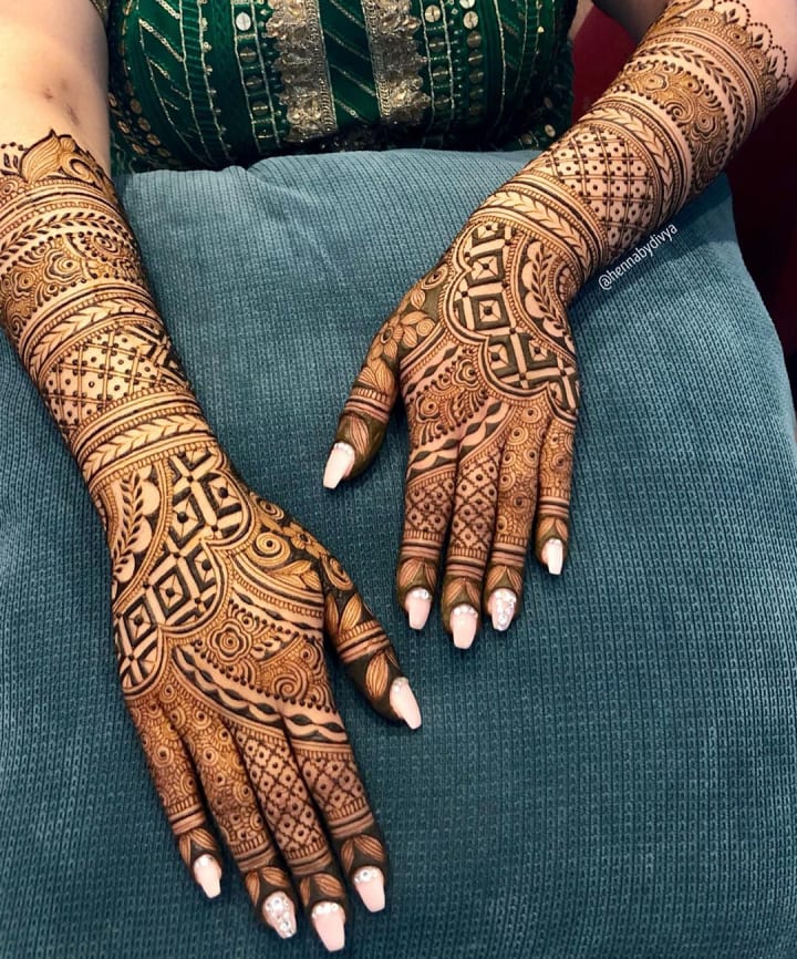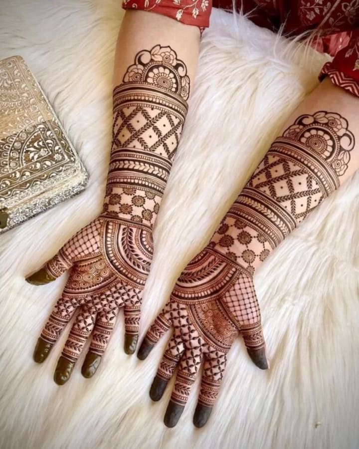 In recent years, modern mehndi designs have become increasingly popular among brides who want something unique and trendy. These designs often feature geometric shapes, minimalistic patterns, and negative spaces. Unlike traditional styles, modern mehndi can be simpler, allowing the bride's personality to shine through the design.
