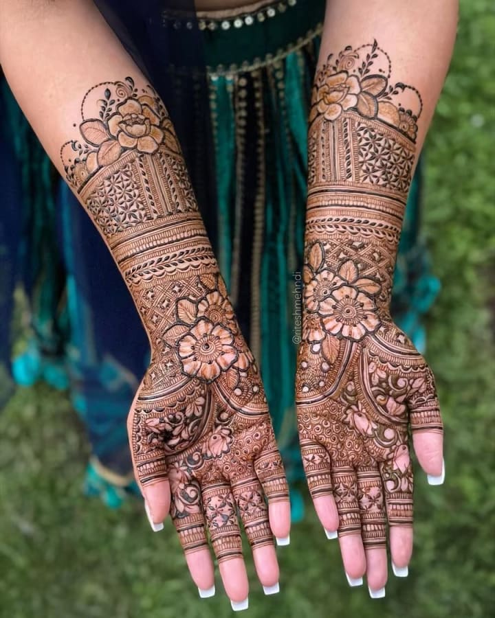 Another growing trend is mixing different mehndi styles to create a fusion design. Brides can combine elements of traditional Indian mehndi with Arabic designs, or even add modern geometric shapes to the mix.