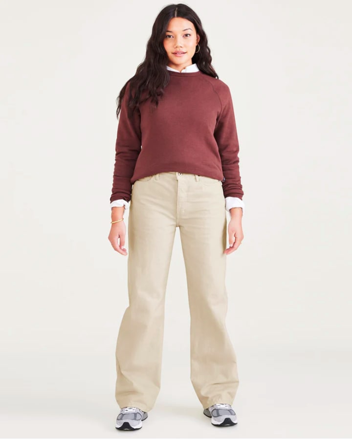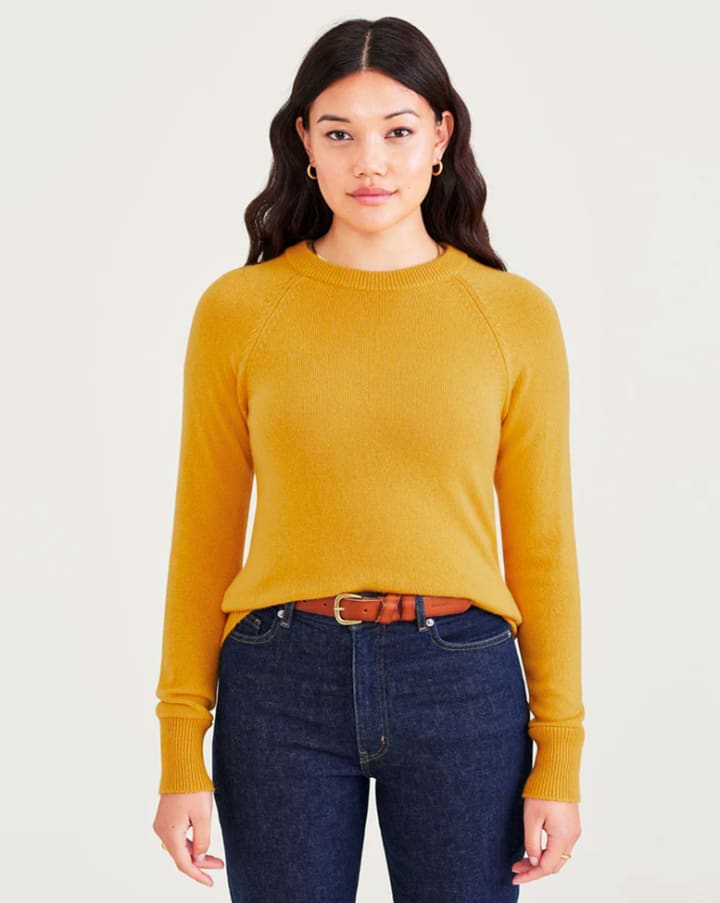 The crewneck sweater is versatile enough to be paired with almost anything, from elegant midi skirts to casual jeans.