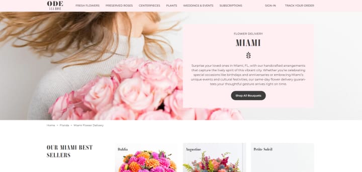 Ode à la Rose brings a Parisian touch to Miami's flower delivery scene, offering expertly crafted bouquets that blend traditional French floral techniques with modern design. Founded by French entrepreneurs, this florist is renowned for its attention to detail and dedication to quality.