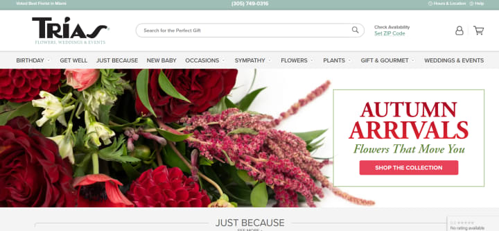 Trias Flowers also provides an efficient and reliable delivery service, including same-day delivery throughout Miami. Their user-friendly website makes it easy to browse a vast selection of arrangements and gifts, catering to all occasions and budgets. Whether you’re planning a wedding, celebrating a birthday, or simply want to brighten someone's day, Trias Flowers has something to offer.