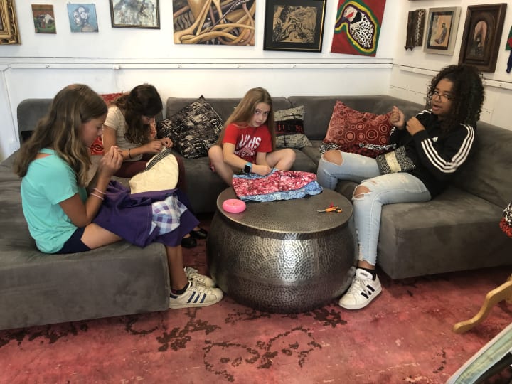Now I teach sewing and crafting to children in my community. They learn the discipline of slow handwork, embroidery, fashion design, millinery and machine sewing in my studio. They experience the satisfaction of creating something they can wear that they themselves conceptualized, planned, pinned, cut, sewed, painted and embellished.