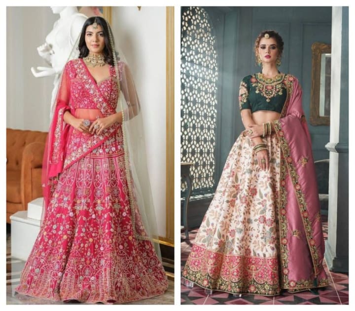Organza: Sheer, lightweight, and stylish - organza bridal lehengas are a new trend with brides aiming for the dreamy, modern look.