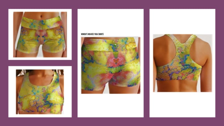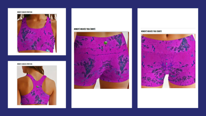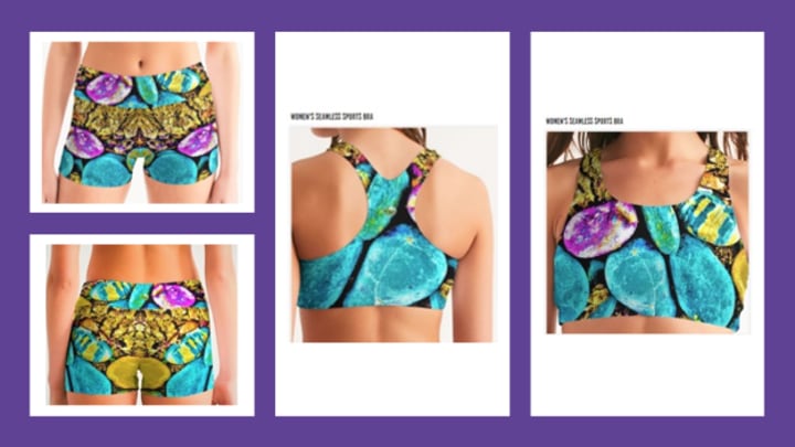 The above image of this beautiful Yoga wear is sea stones at the foot of a tree by the side of the road in Winter in New Jersey. I took the pictures and created this piece.