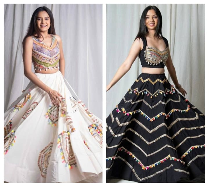 As a tip: Wear your Navratri lehenga with oxidized jewelry, jhumkas, bangles, and a bindi to complete the festive look.