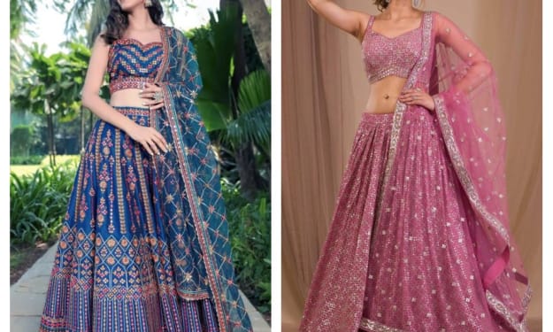 If you are attending the wedding, a yellow color lehenga can set you apart visibly but not literally upstage the bride. If the wedding is during the day, consider lighter fabrics like organza or chiffon, and limit embroidery to a minimum. If you're attending an evening reception, opt into wearing a darker shade of yellow and add sequins or beads fabrics. You can balance the layering of yellow by adding contrasting jewelry - consider emerald green jewelry or ruby red bangles. Or perhaps you can even consider an embroidered clutch of potli bag lehenga set.