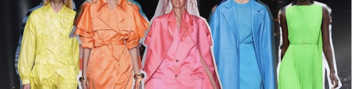The models who could pull of such a fluorescent colour palette in these shows, particularly pale-skinned models, deserve alot of respect. This raises another concern of how are such colours styled in daily life? One reason to be thankful for our summer holidays being cancelled in 2020, was that we avoided having to expose our colourless, Vitamin D-lacking skin in fluorescent swimming costumes on the beach. If neon cannot compliment skin colour, what colours will it work with? Magazine advice columns tell readers to add pops of neon to their otherwise neutral, modest and monochrome looks. They suggest a neon yellow or green clutch with a beige outfit, or neon and orange pink trainers with a black suit. Really though, the only colour that matches neon, is MORE neon! Colour blocking for dramatic effect seems to be in now. I think this explains the head-to-toe struck-by-lightening looks shown by models and those courageous enough to wear them down the highstreet on their daily walks.