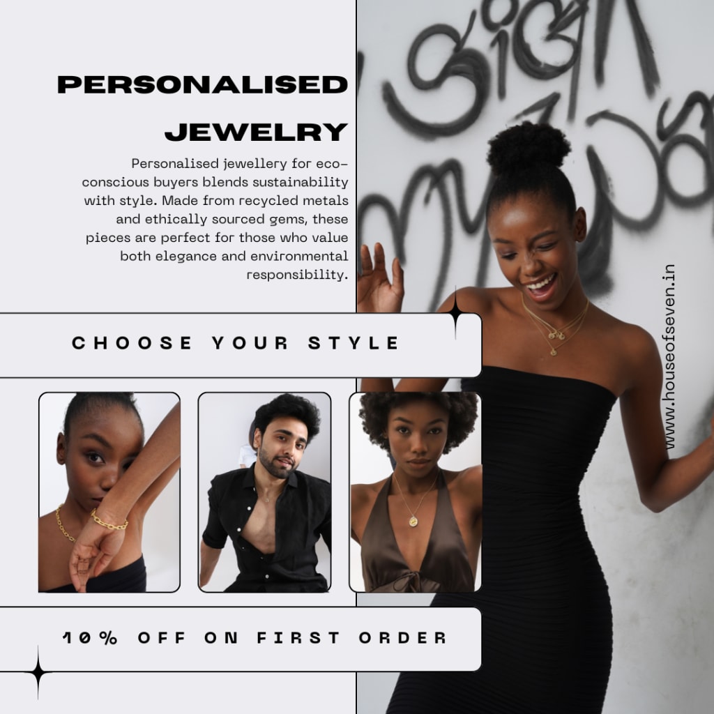 Personalised eco-friendly jewellery includes engraved necklaces, birthstone rings, handmade bracelets, and upcycled metal earrings etc. These pieces blend sustainability with unique, custom designs, which is described as follows: