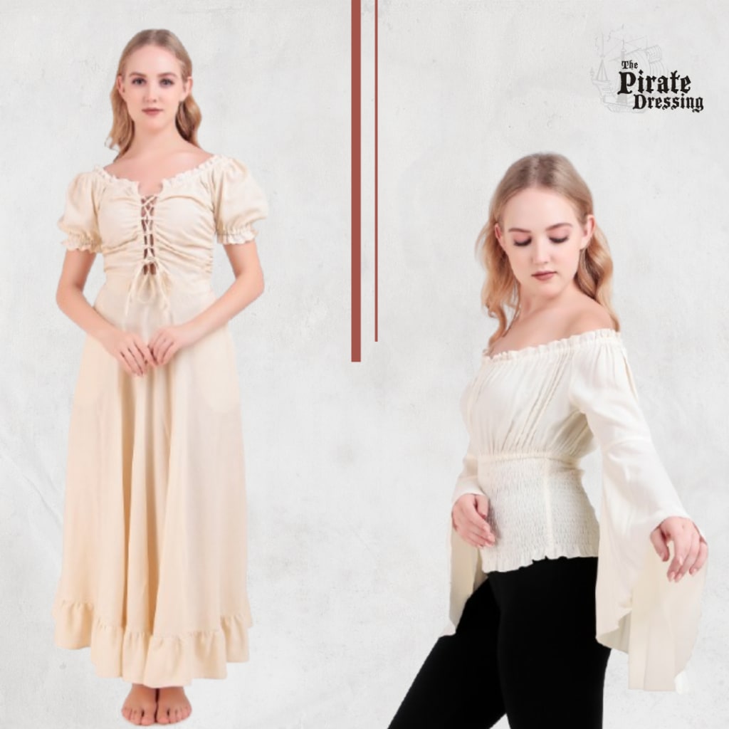 Renaissance Faire Elegance: Pair a tricorn hat with a flowing shirt, leather boots, and a corset for an authentic pirate look.