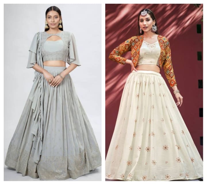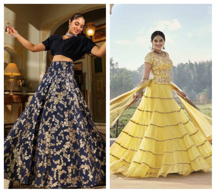 Fabric: a silk lehenga in this cut looks elegant, while velvet lehenga will have a striking and tailored finish.